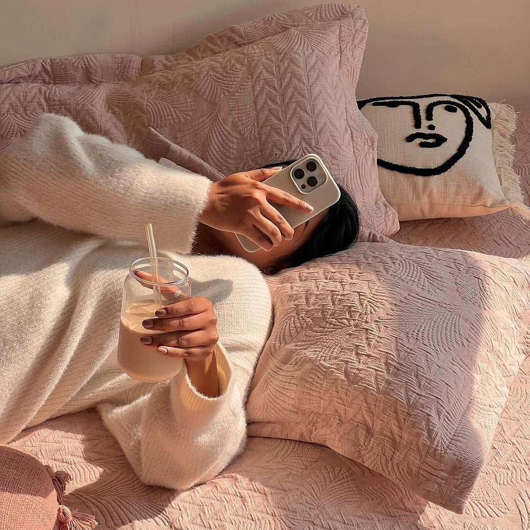 The bedcover by Studio 16 goes so well with our bedroom decor! The fabric is pure cotton and the color too is very soothing -totally recommend for a daily spread!