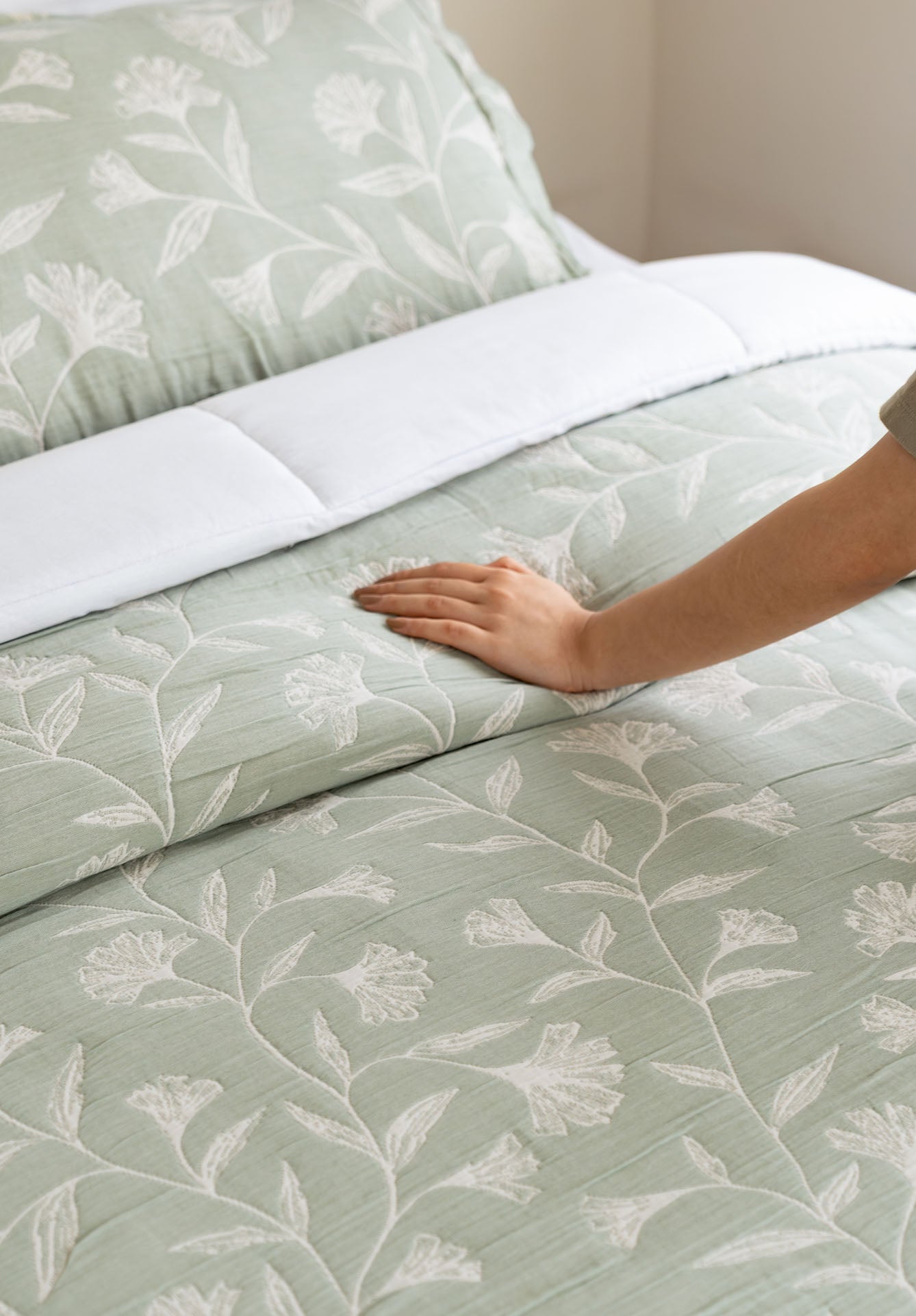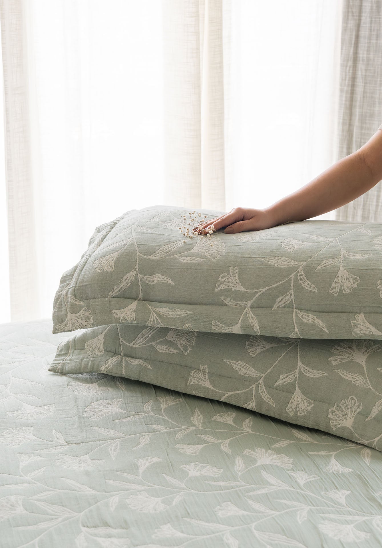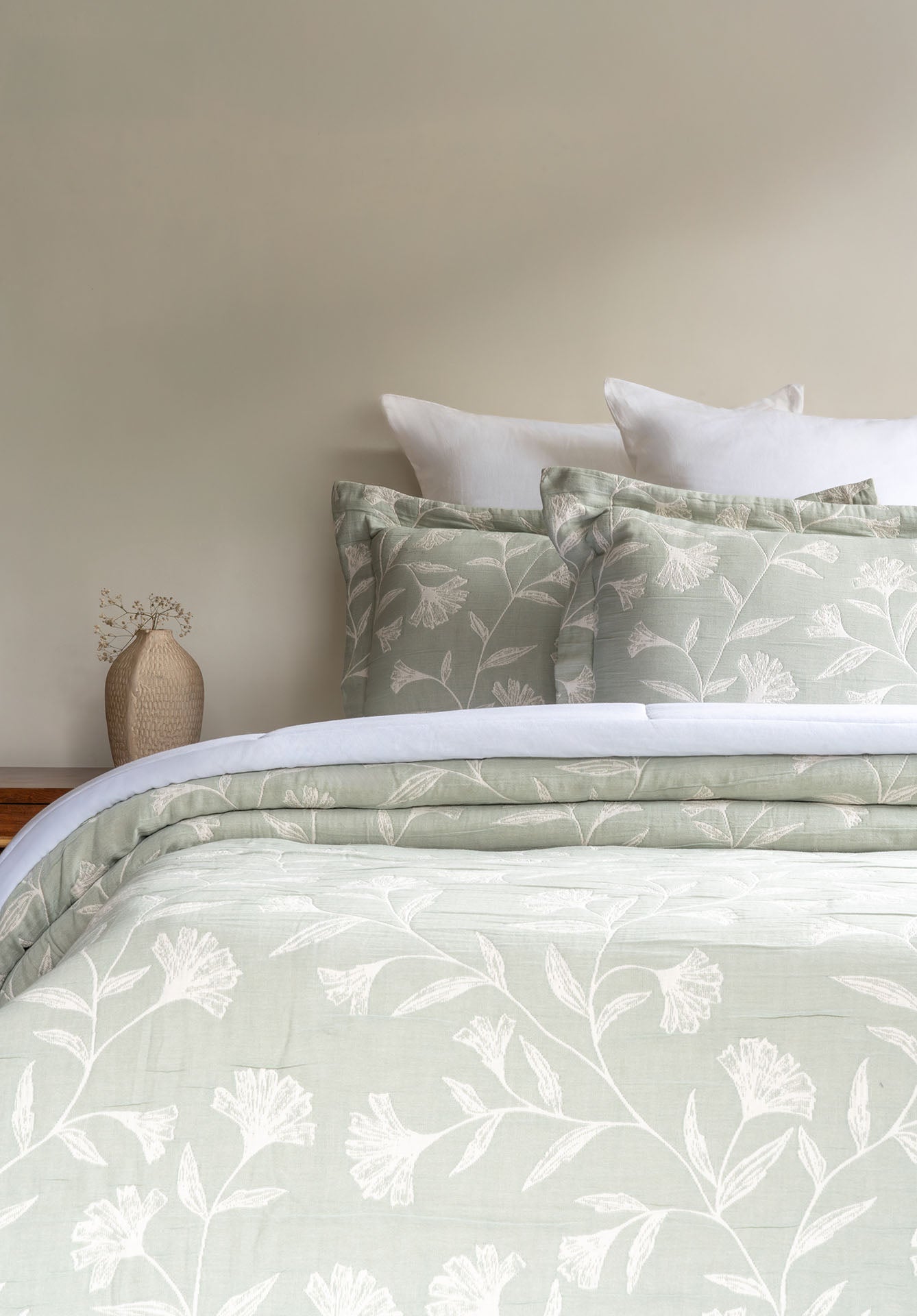 Softly understated yet inherently luxurious, our Amira bed Cover Set brings texture and calm to your space. Crafted from 100% cotton, the fabric features delicate -work inspired by wild meadow florals — gently raised design that lends a subtle dimension and natural charm.