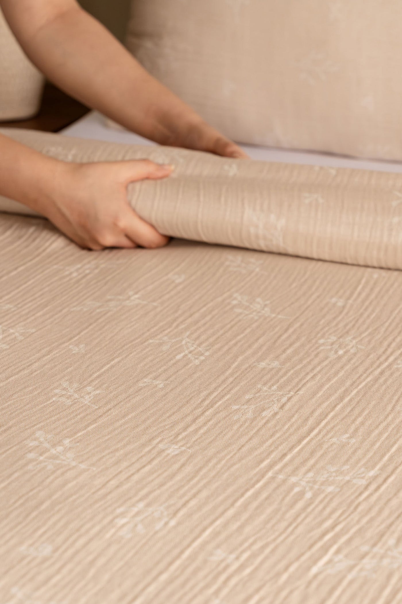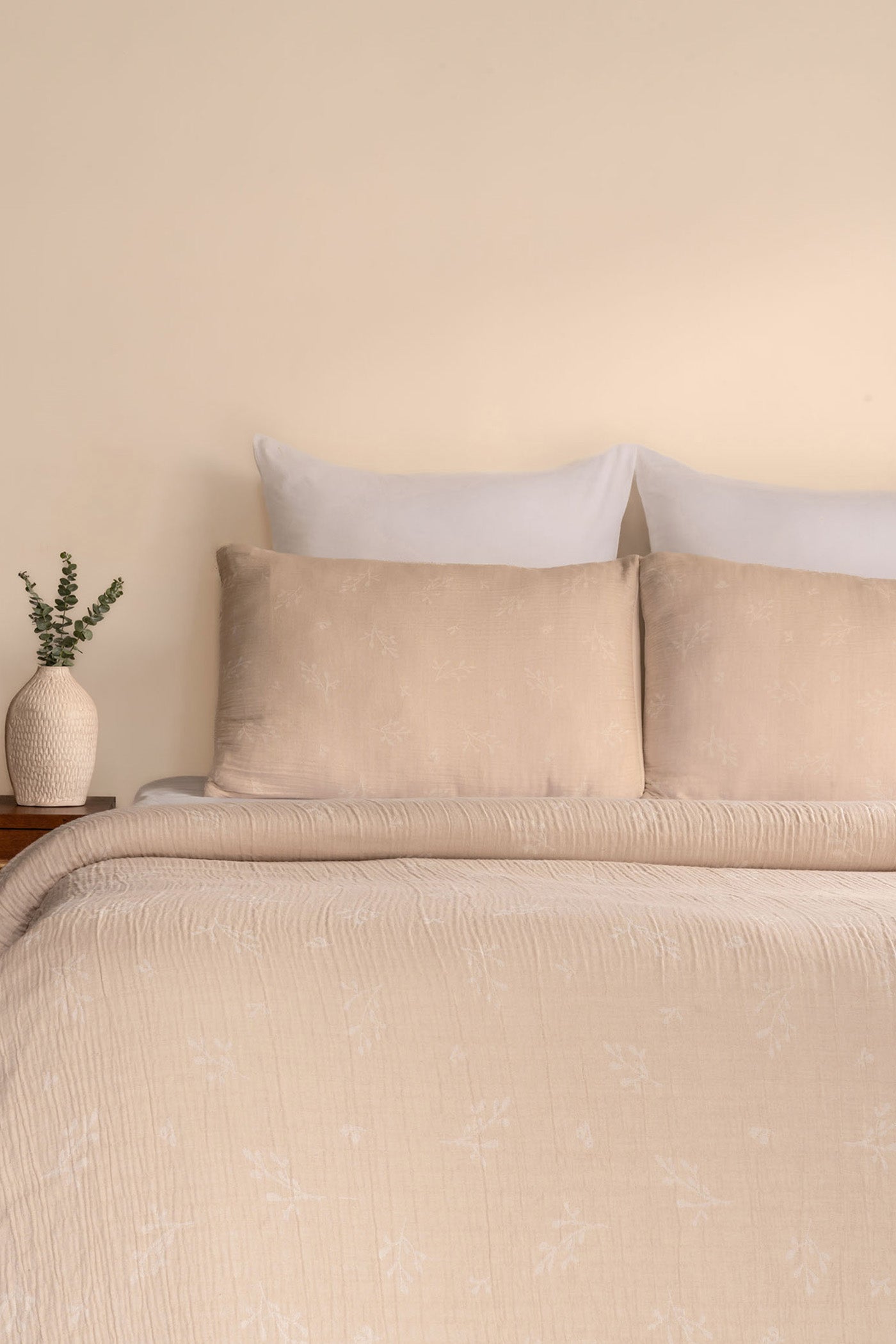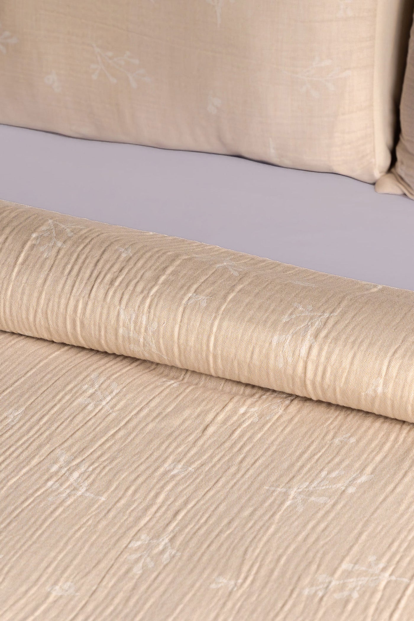 Inspired by the quiet poetry of nature, our Flora Bed Cover Set brings a fresh, soothing softness to your space. The gentle Pastel base is detailed with delicate woven floral motifs — subtle, scattered branches that add a touch of organic charm without overwhelming the eye.