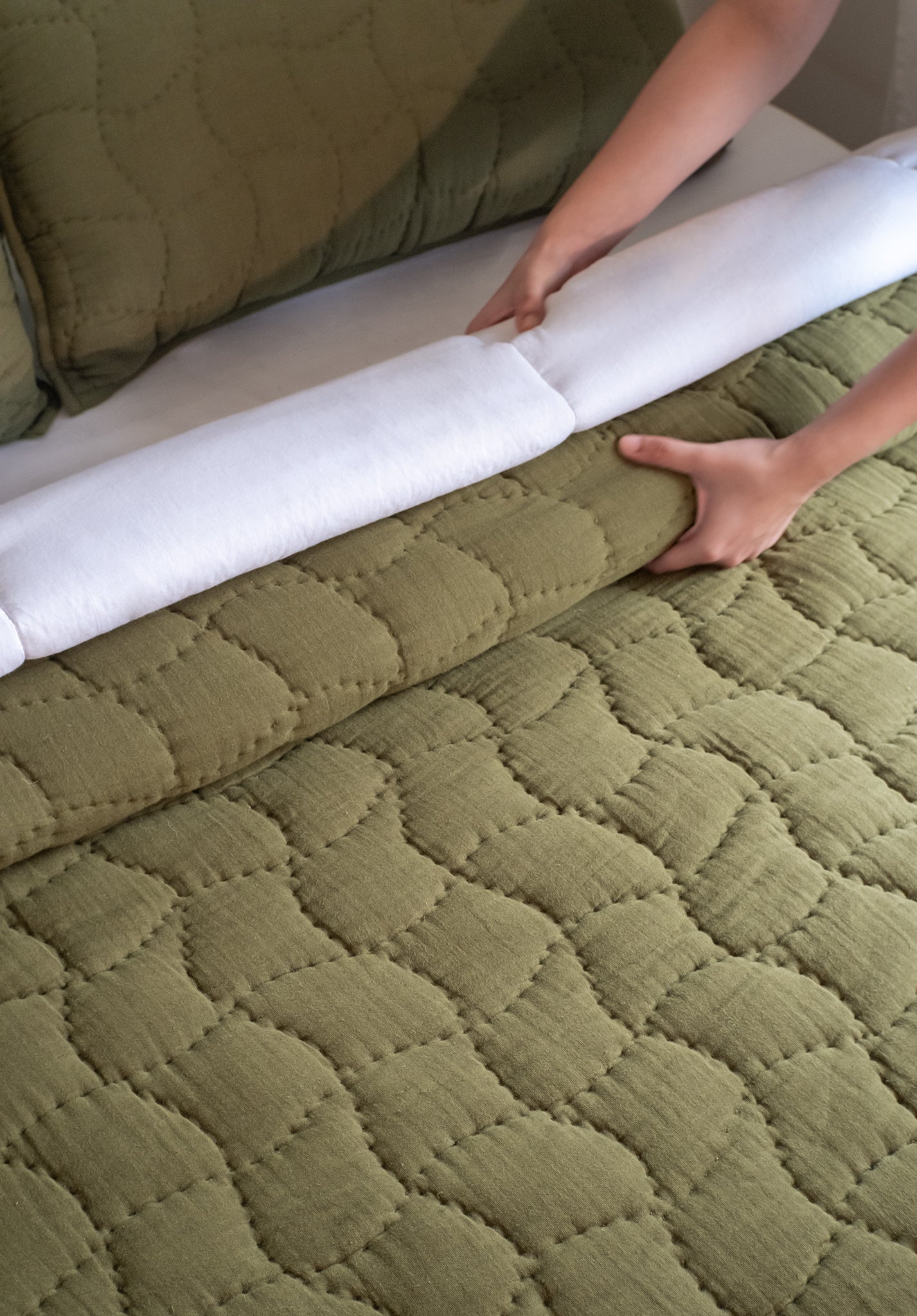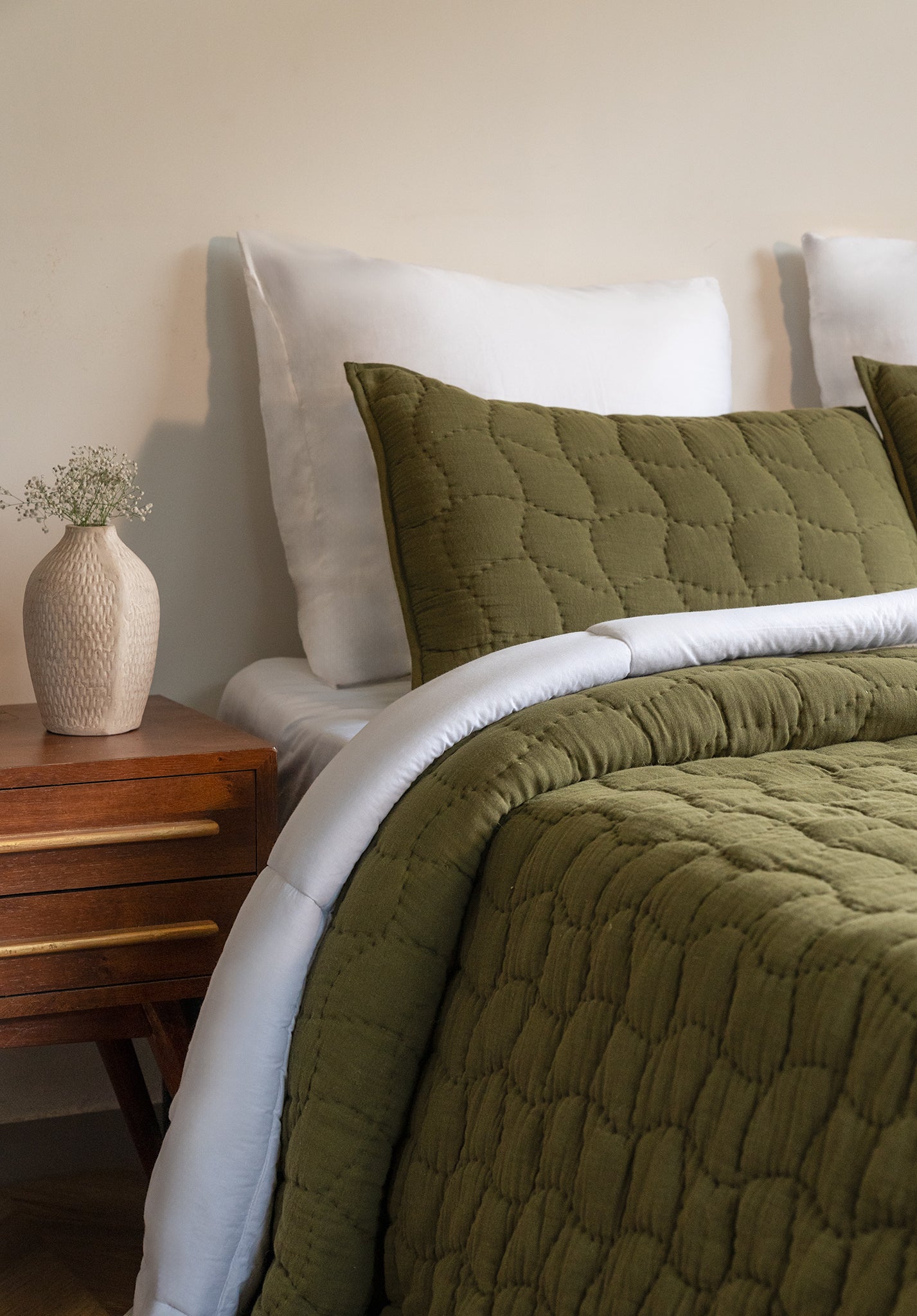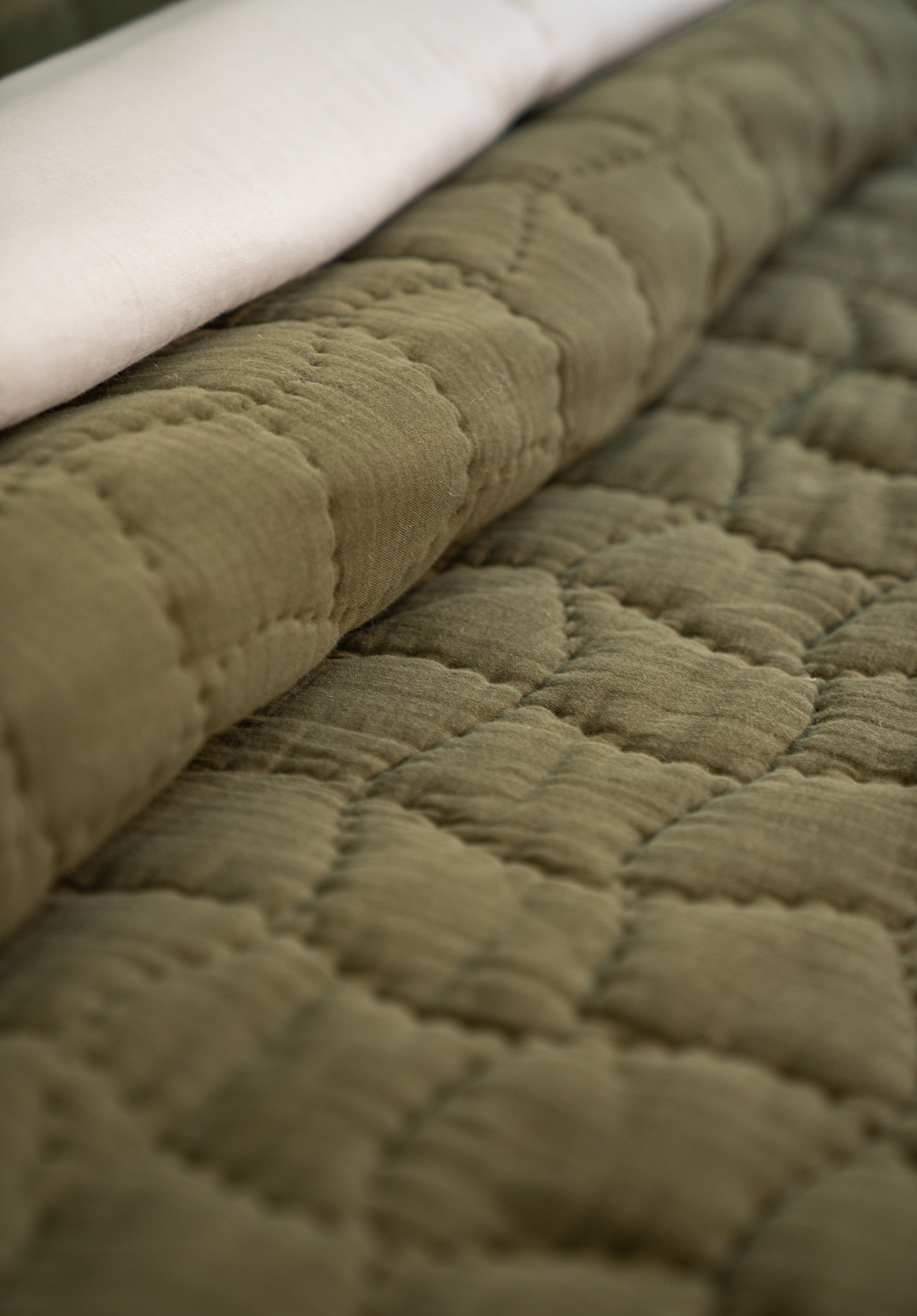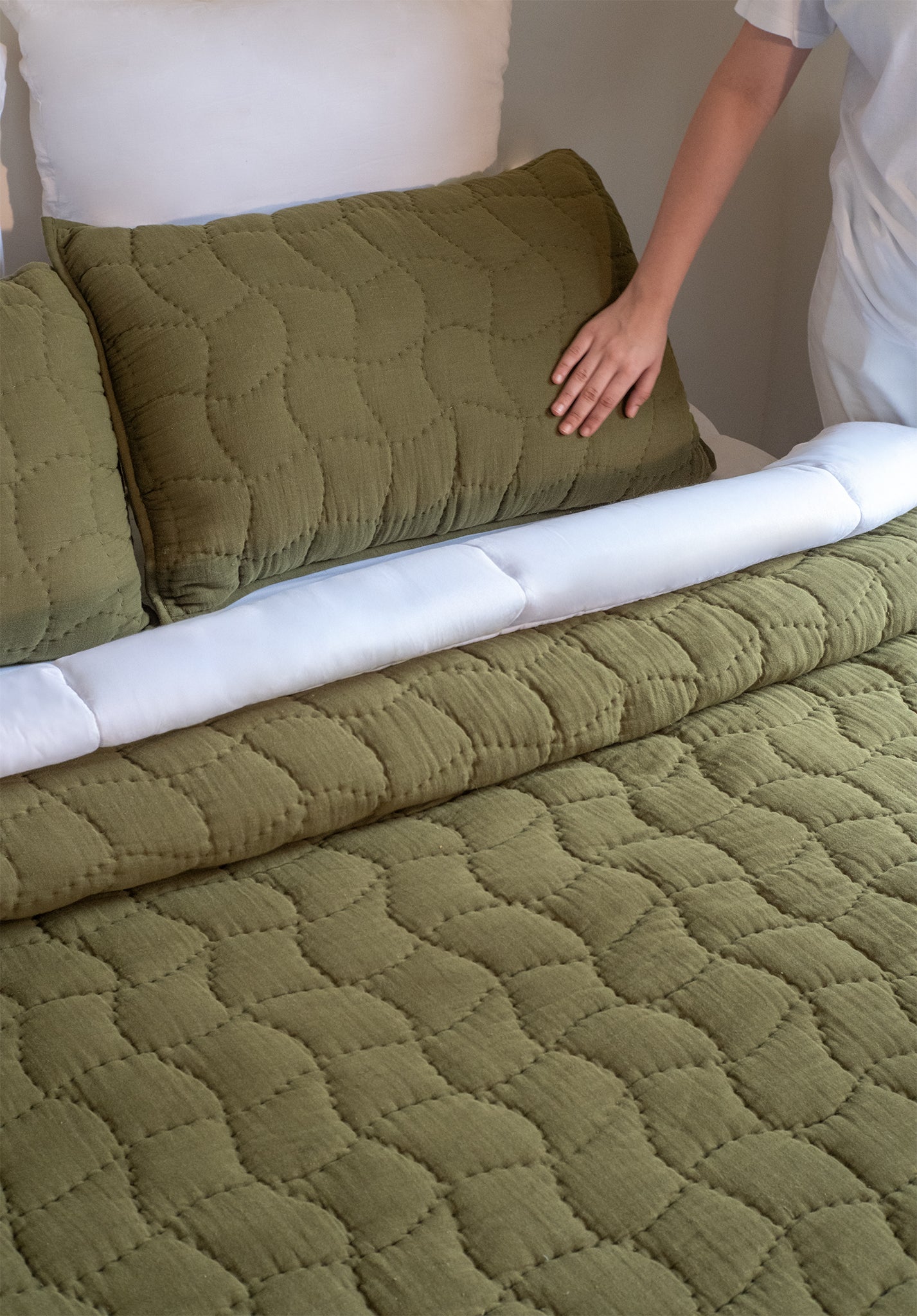 Our hand-stitched quilts are crafted with traditional techniques, delivering an exceptionally soft and lofty texture that feels as light and cozy as a cloud. The intricate hand stitching ensures even distribution of the batting, making the quilt fluffy, breathable, and luxuriously soft. The reversible side features a beautiful striped pattern on the reverse side, perfectly complementing the front for a versatile and stylish look.