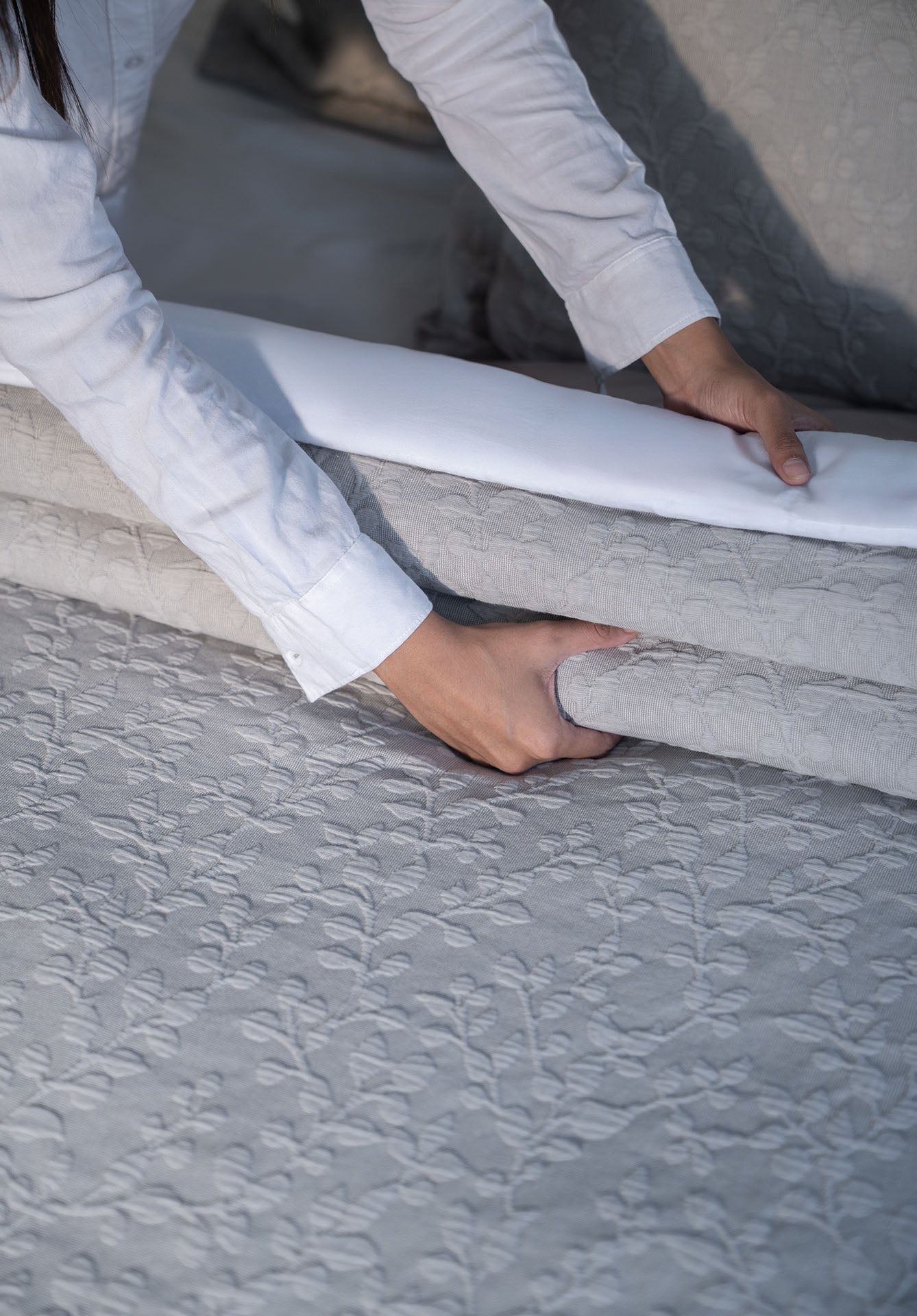 Drape your bed in beauty with Foliage, a masterpiece of sophistication. Immerse yourself in opulence as the exquisite leafy texture, woven with a special technique. Meticulously crafted with unparalleled attention to detail, the Foliage bedspread not only mesmerizes with its stunning patterns but also cocoon you in unmatched comfort.