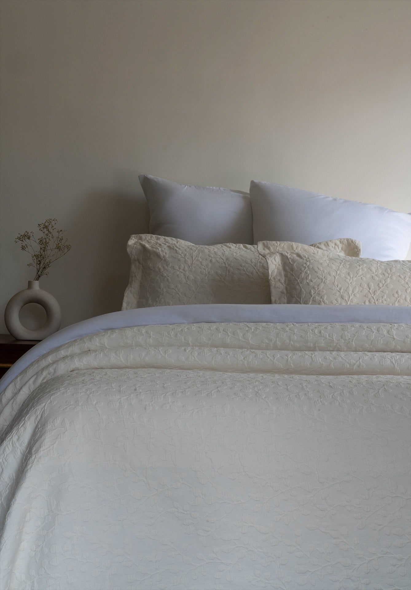 Drape your bed in beauty with Foliage, a masterpiece of sophistication. Immerse yourself in opulence as the exquisite leafy texture, woven with a special technique. Meticulously crafted with unparalleled attention to detail, the Foliage bedspread not only mesmerizes with its stunning patterns but also cocoon you in unmatched comfort.