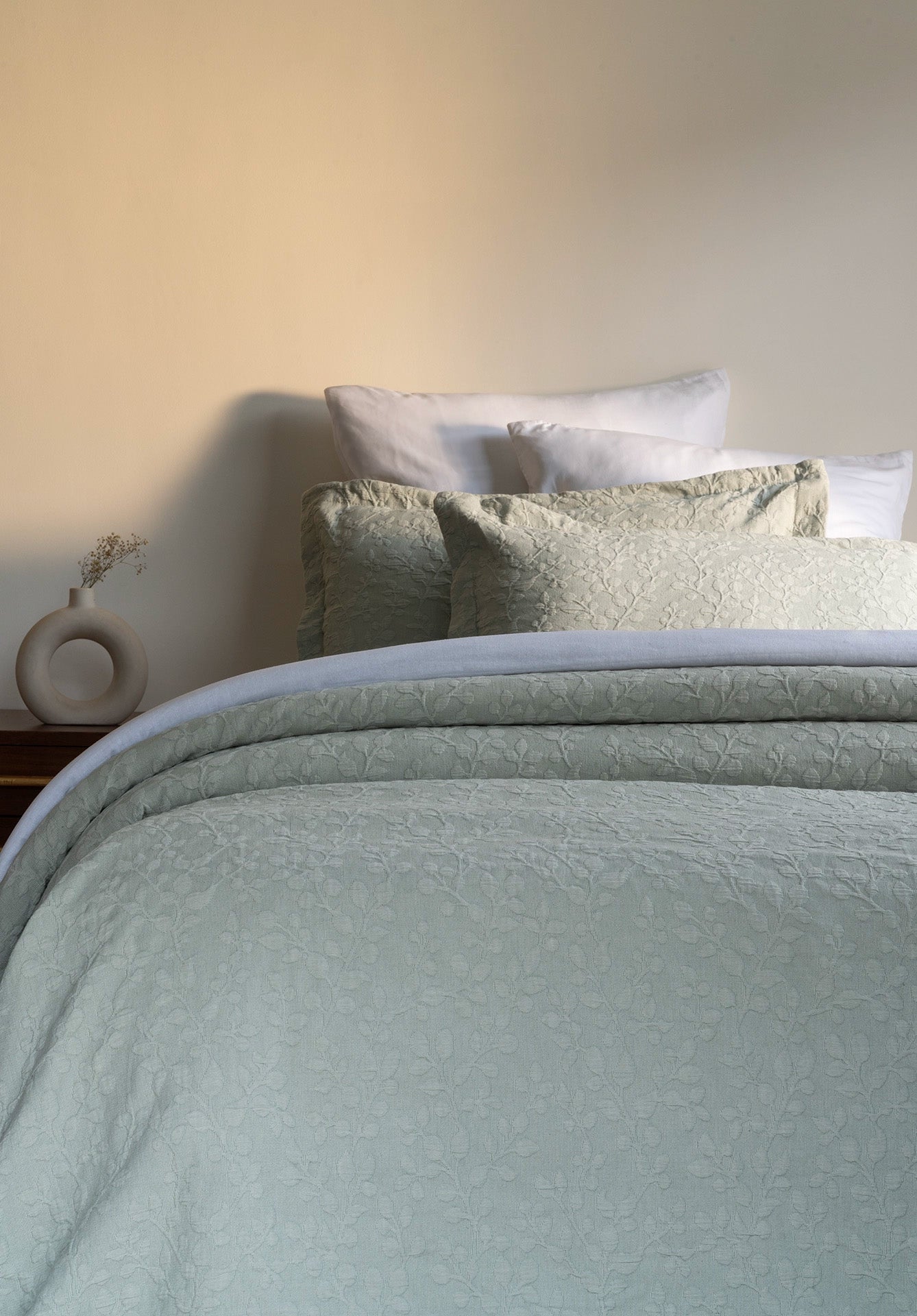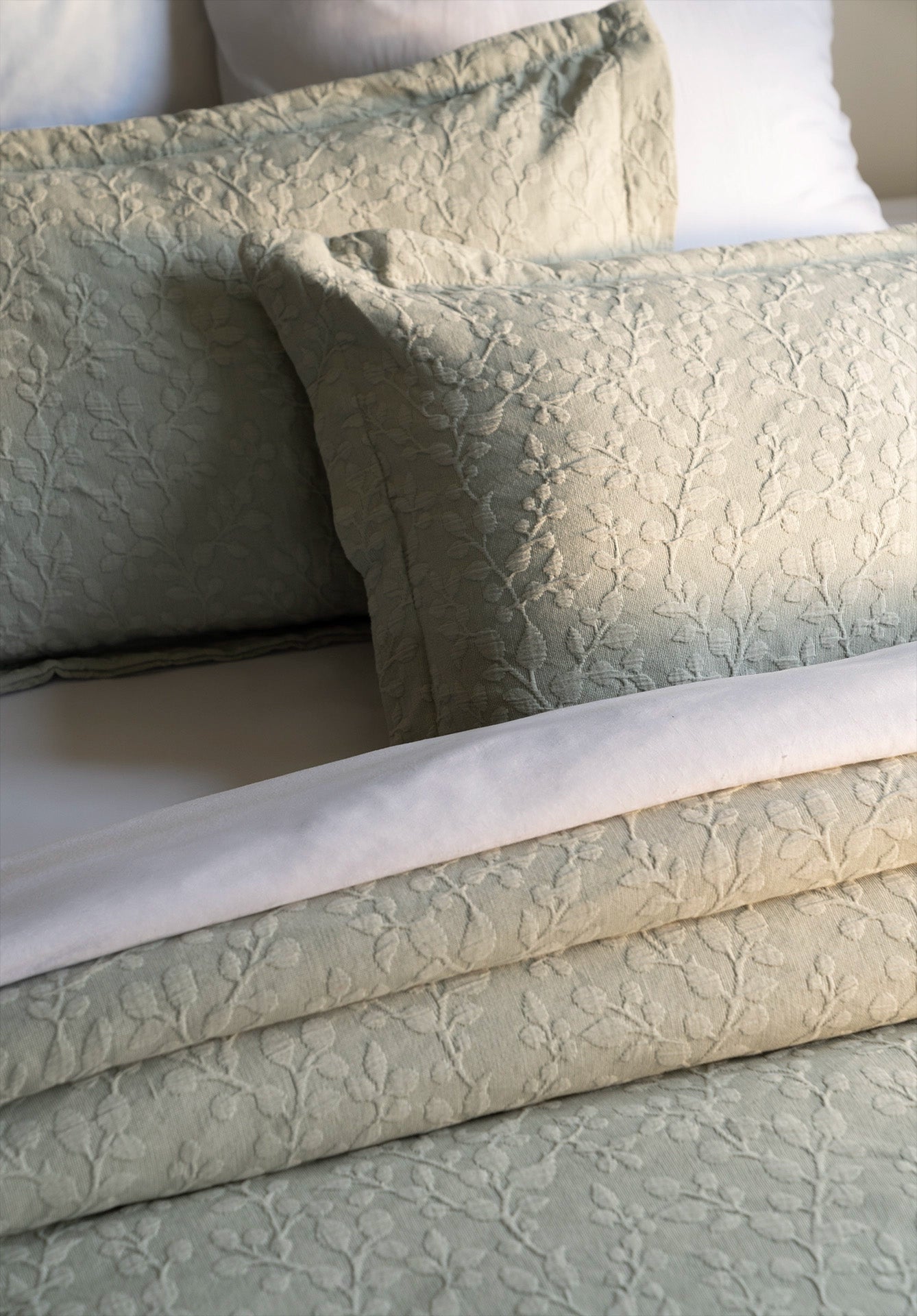 Drape your bed in beauty with Foliage, a masterpiece of sophistication. Immerse yourself in opulence as the exquisite leafy texture, woven with a special technique. Meticulously crafted with unparalleled attention to detail, the Foliage bedspread not only mesmerizes with its stunning patterns but also cocoon you in unmatched comfort.