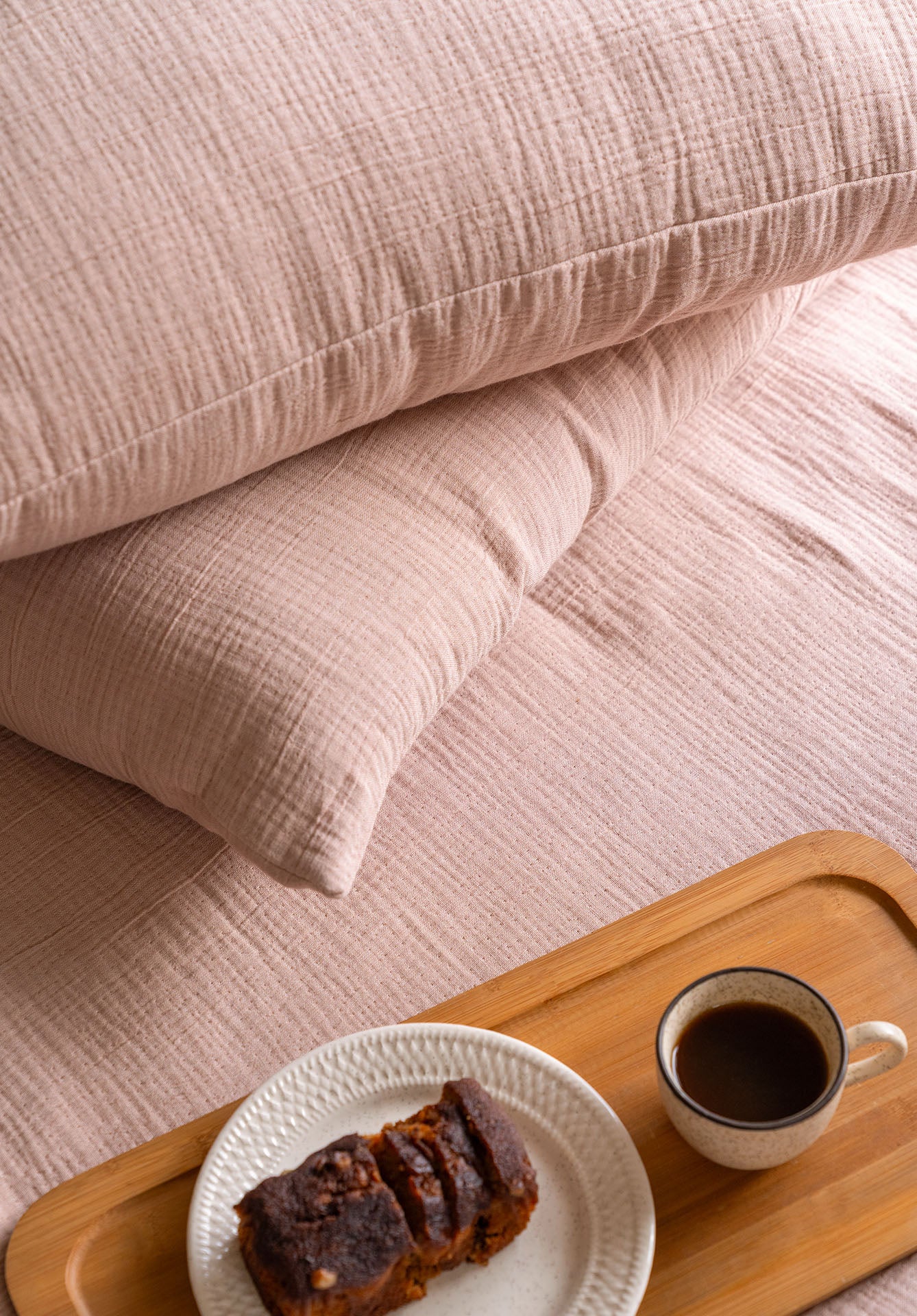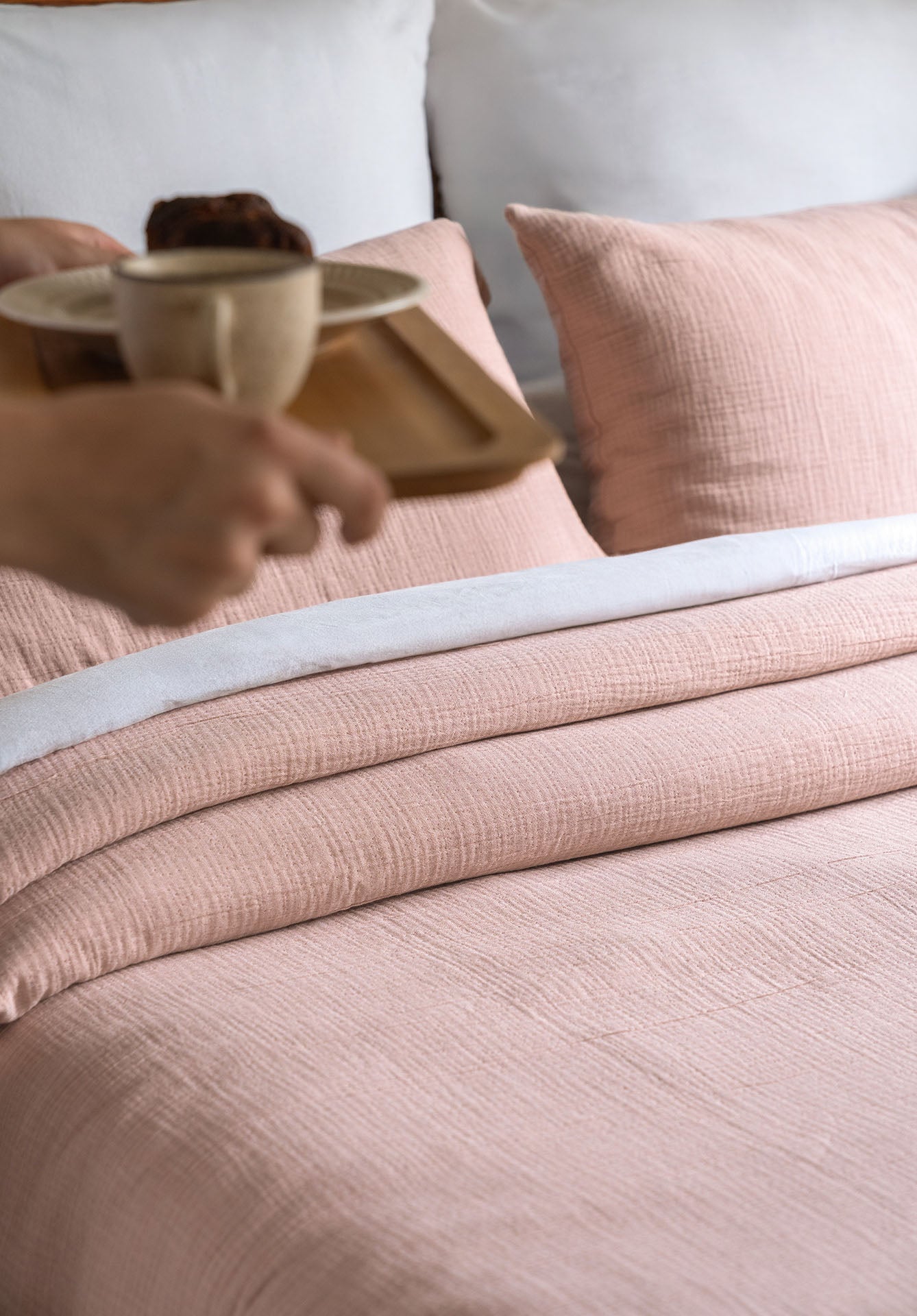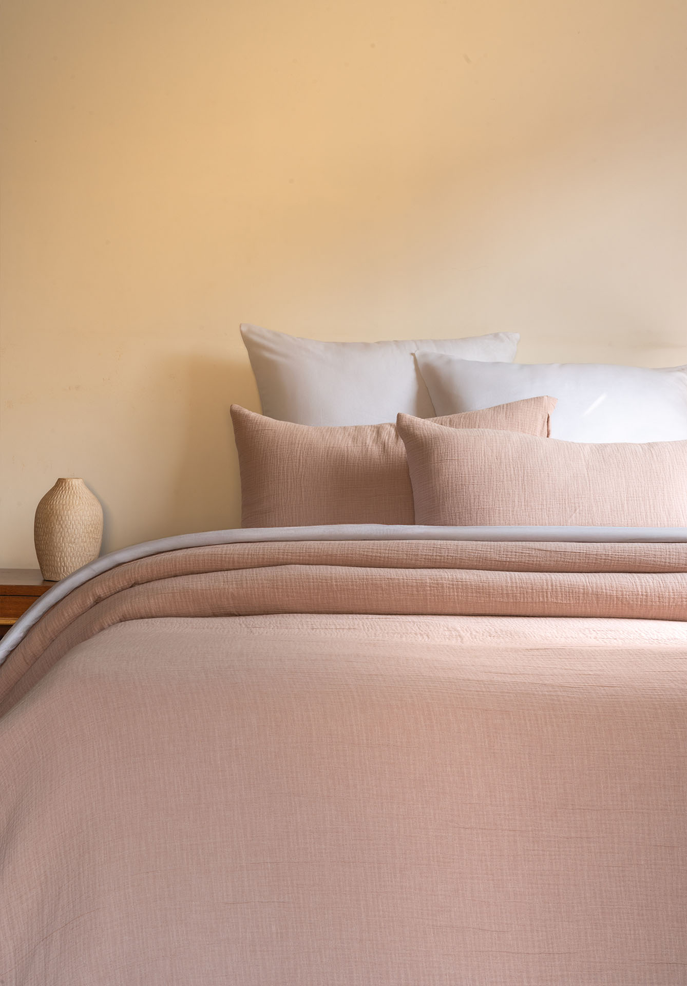 Introducing Gauze, a bedspread that effortlessly blends simplicity with sophistication. This reversible masterpiece transforms your bedroom with its delicate design, providing a sensual feel and a grounded look, while the cooling touch ensures warmth in any weather. Elevate your sleep sanctuary with Gauze, where style meets comfort in every stitch.
