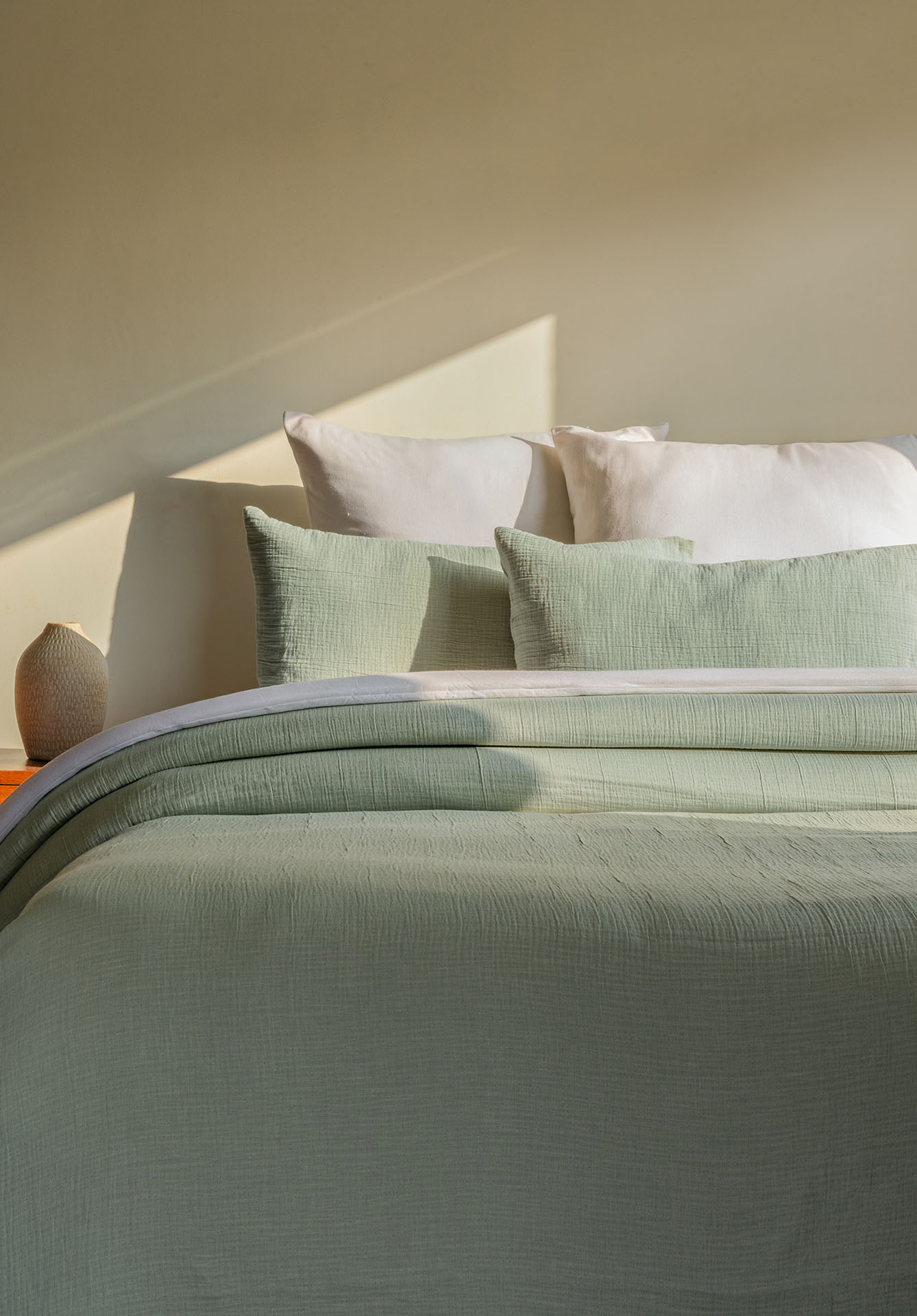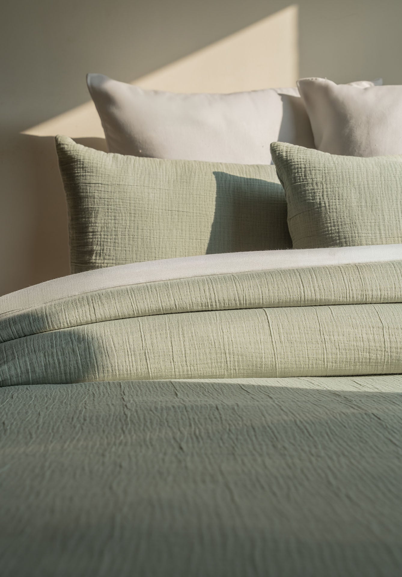 Introducing Gauze, a bedspread that effortlessly blends simplicity with sophistication. This reversible masterpiece transforms your bedroom with its delicate design, providing a sensual feel and a grounded look, while the cooling touch ensures warmth in any weather. Elevate your sleep sanctuary with Gauze, where style meets comfort in every stitch.