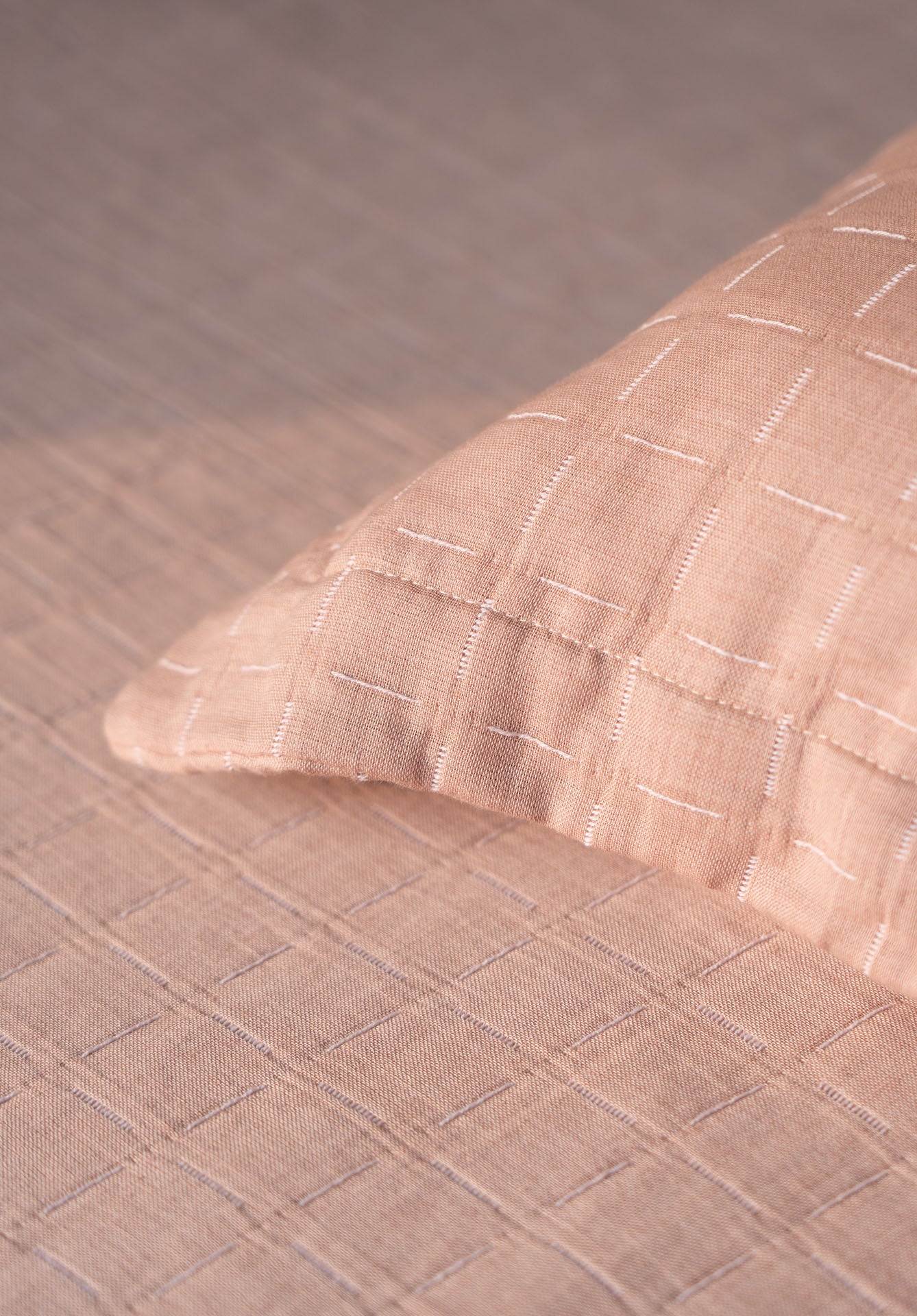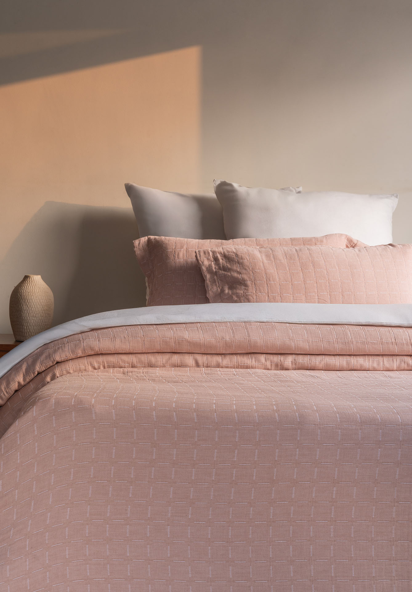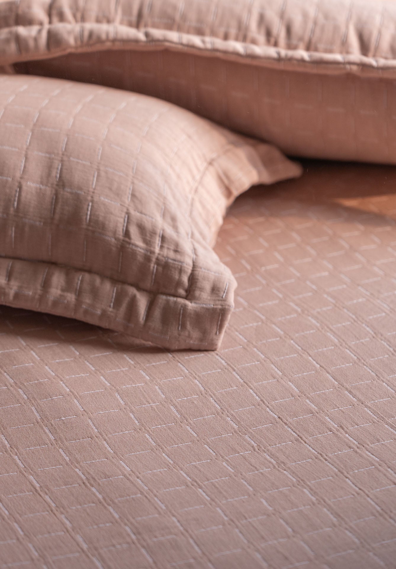 Introducing Grid , a bedspread that effortlessly blends simplicity with sophistication. This reversible masterpiece transforms your bedroom with its delicate design, providing a sensual feel and a grounded look, while the cooling touch ensures warmth in any weather. Elevate your sleep sanctuary with Grid , where style meets comfort in every stitch.