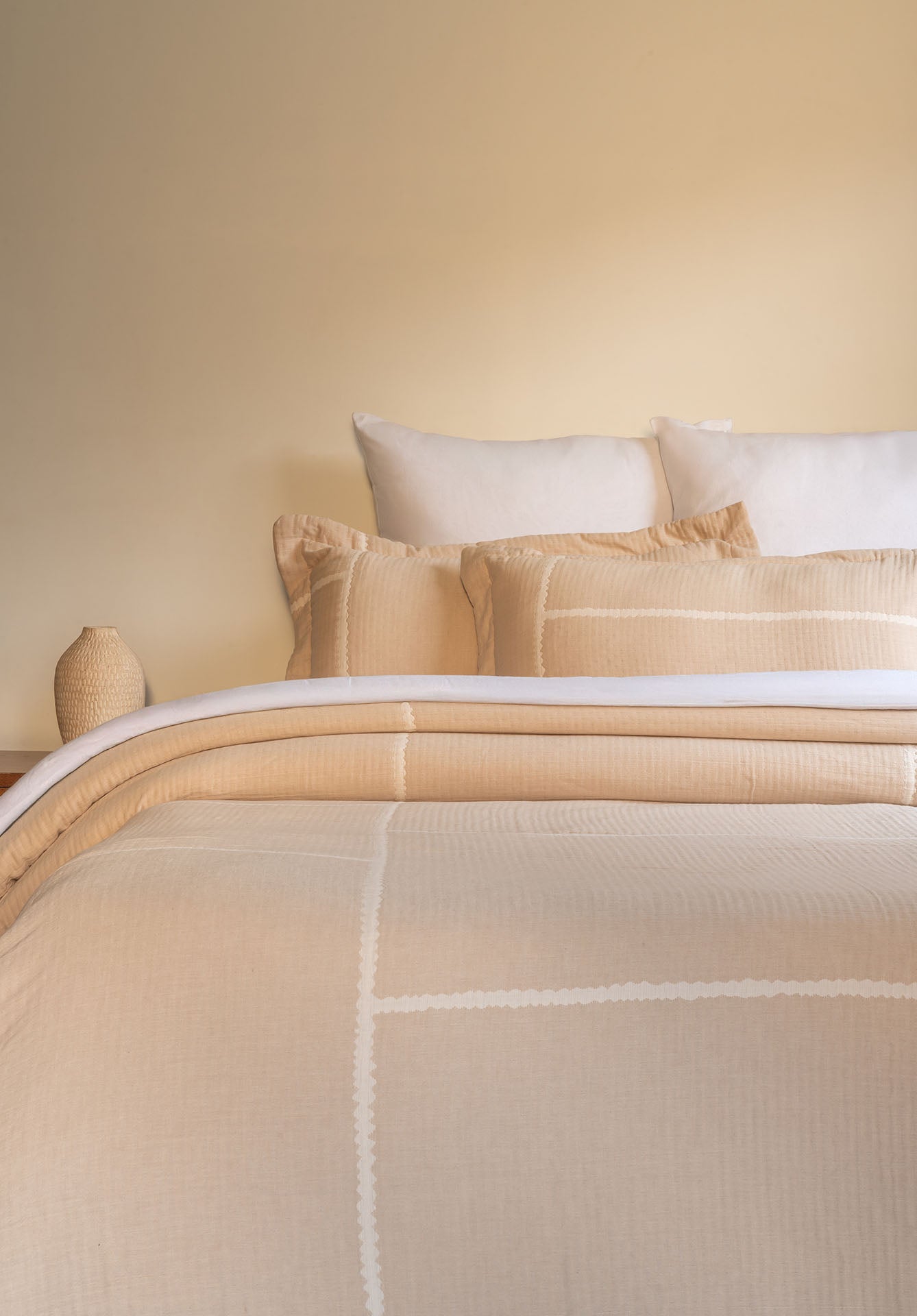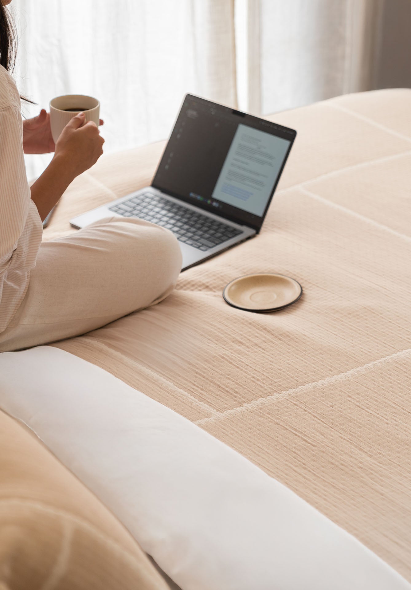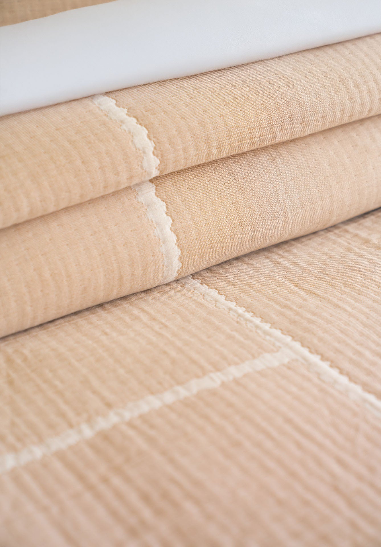Introducing Linea, a bedspread that effortlessly blends simplicity with sophistication. This reversible masterpiece transforms your bedroom with its delicate design, providing a sensual feel and a grounded look, while the cooling touch ensures warmth in any weather. Elevate your sleep sanctuary with Linea, where style meets comfort in every stitch.