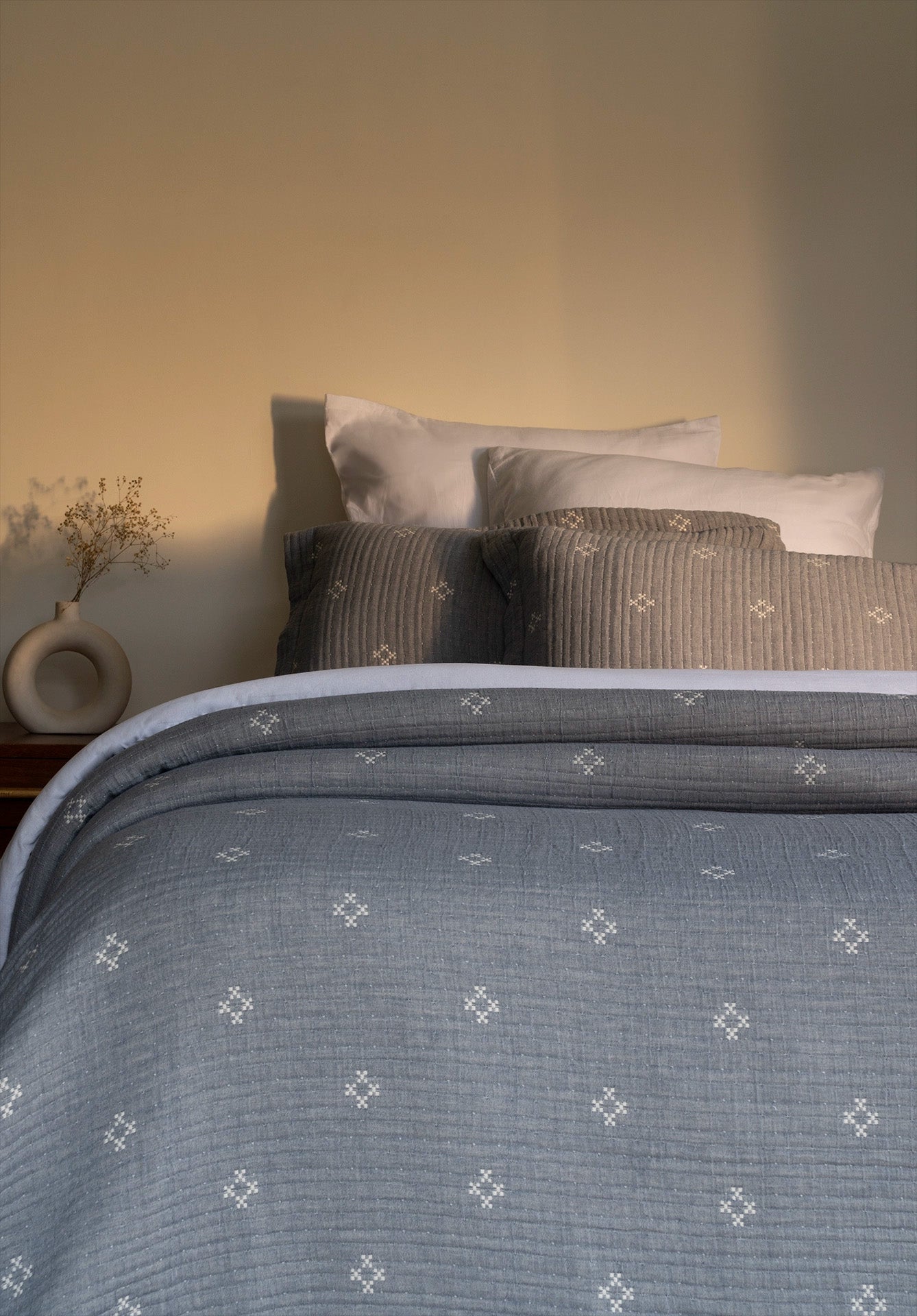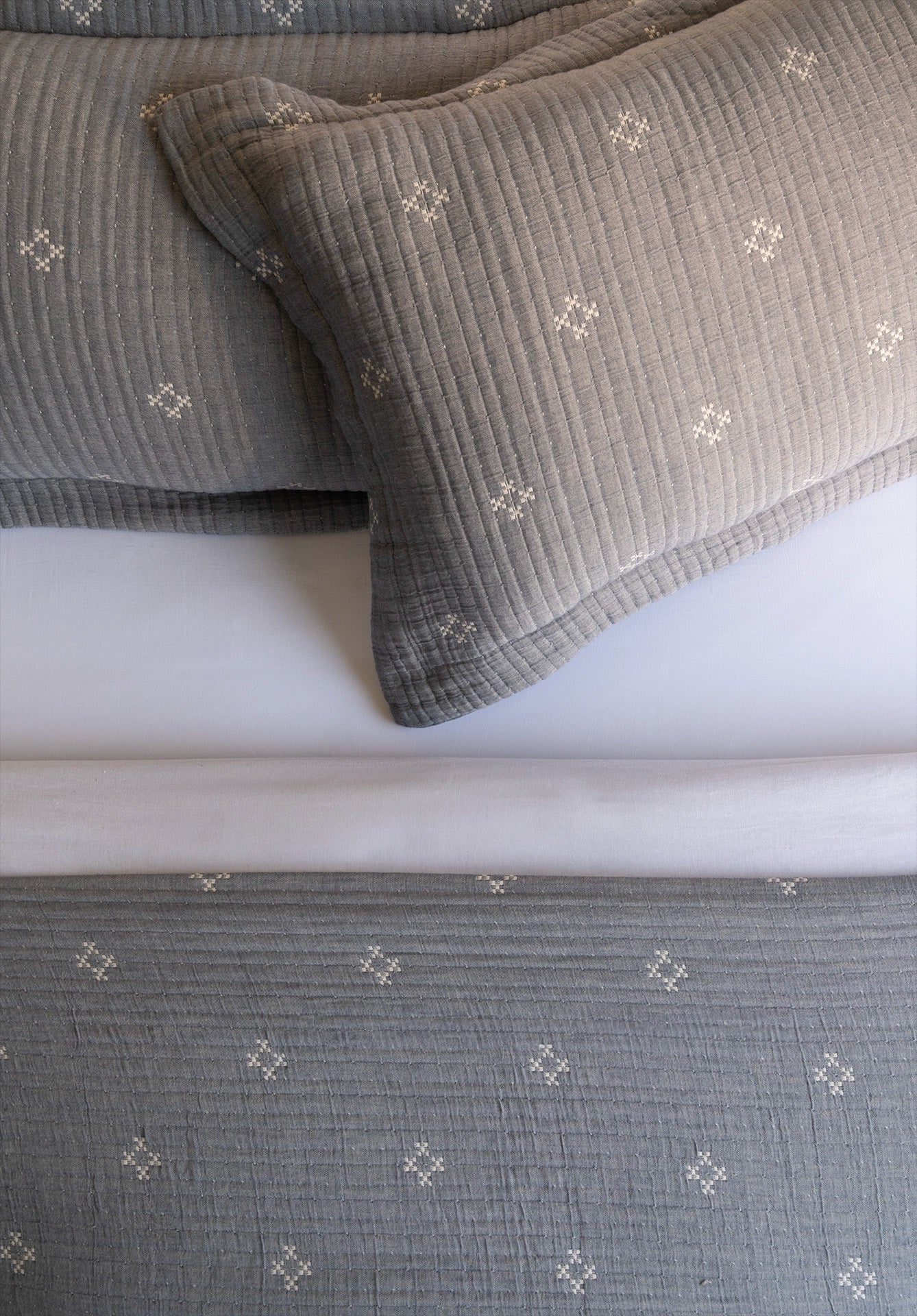Introducing Speckle, the epitome of comfort and style. Its gauze fabric on both sides is reversible and adaptable, allowing you to easily transform your home or enjoy a pleasant night's sleep. The speckle pattern offers two layers for a gorgeously textured and quilted appearance, and its cooler touch ensures warmed sleepers comfortable in any climate, making it the ideal addition to your haven of a bedroom.