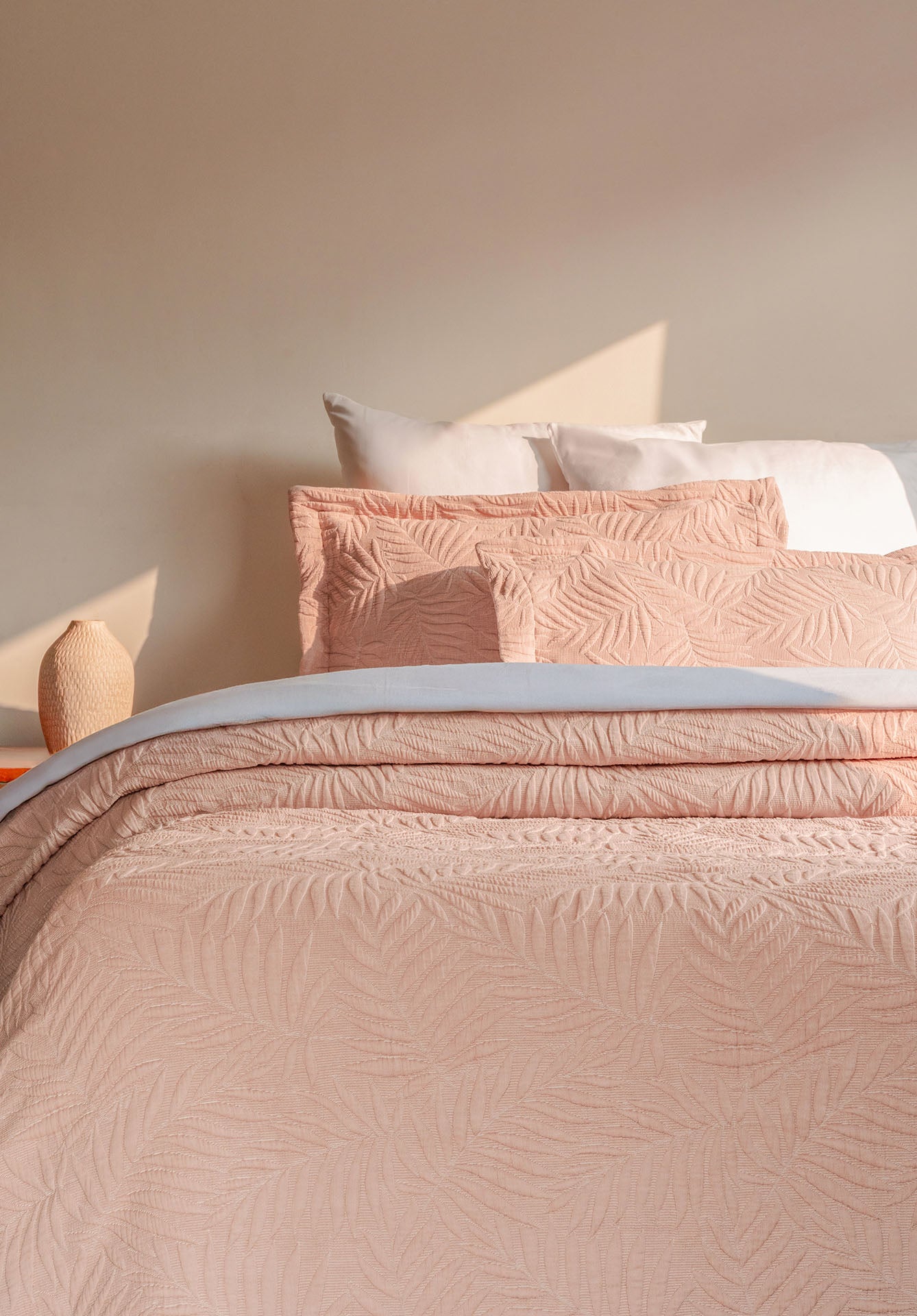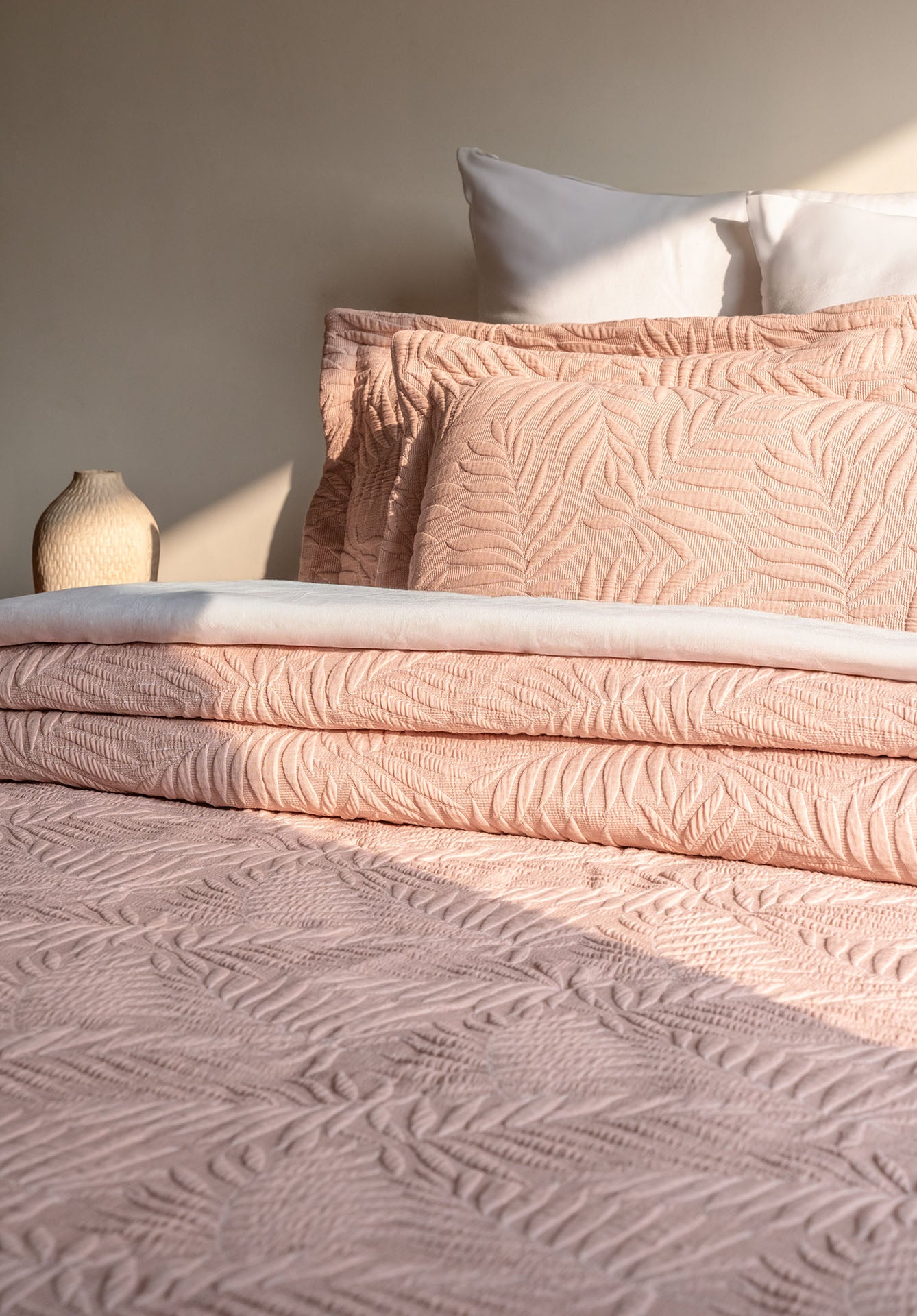 Introducing Tropical, a bedspread that effortlessly blends simplicity with sophistication. This reversible masterpiece transforms your bedroom with its delicate design, providing a sensual feel and a grounded look, while the cooling touch ensures warmth in any weather. Elevate your sleep sanctuary with Tropical, where style meets comfort in every stitch.