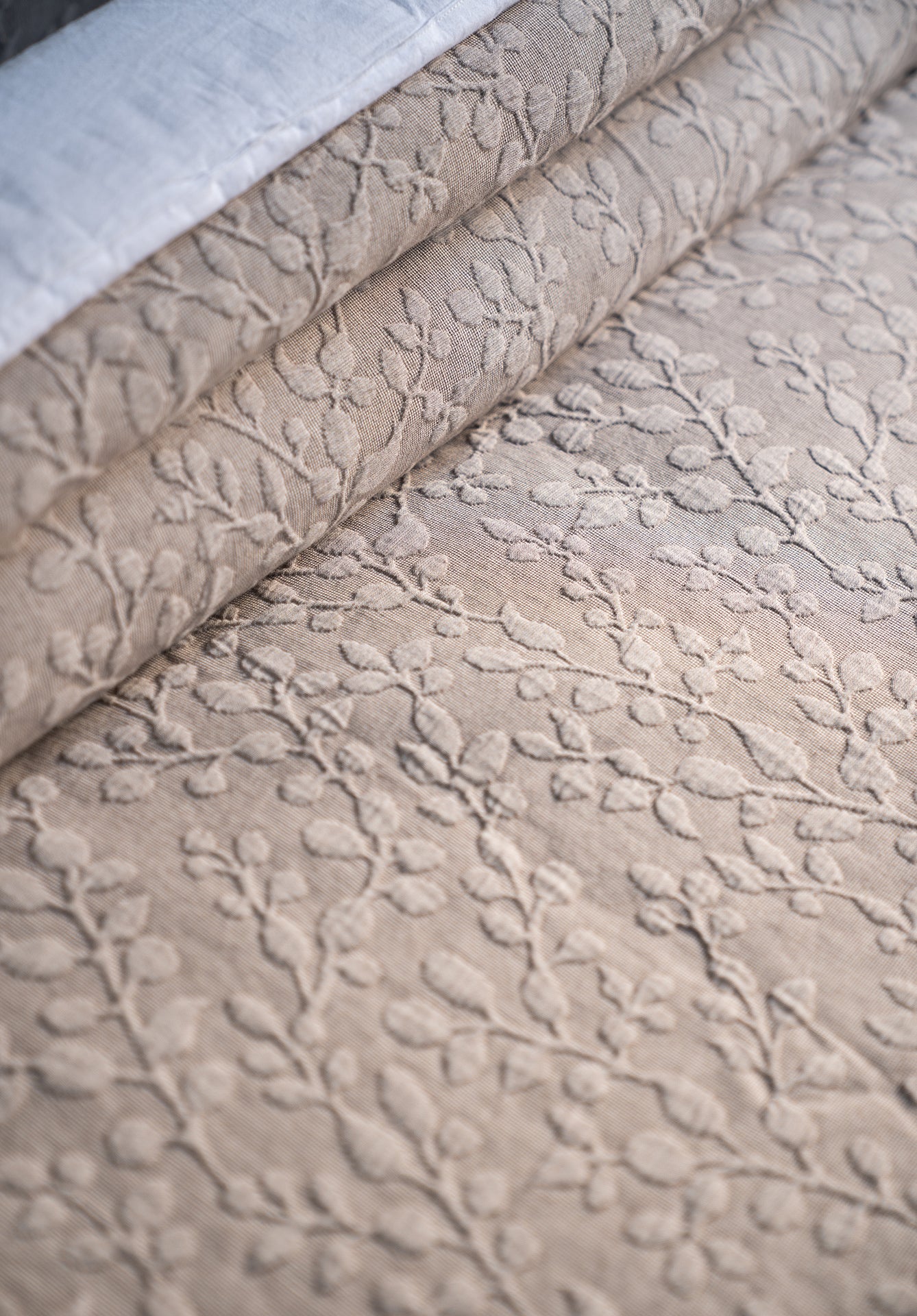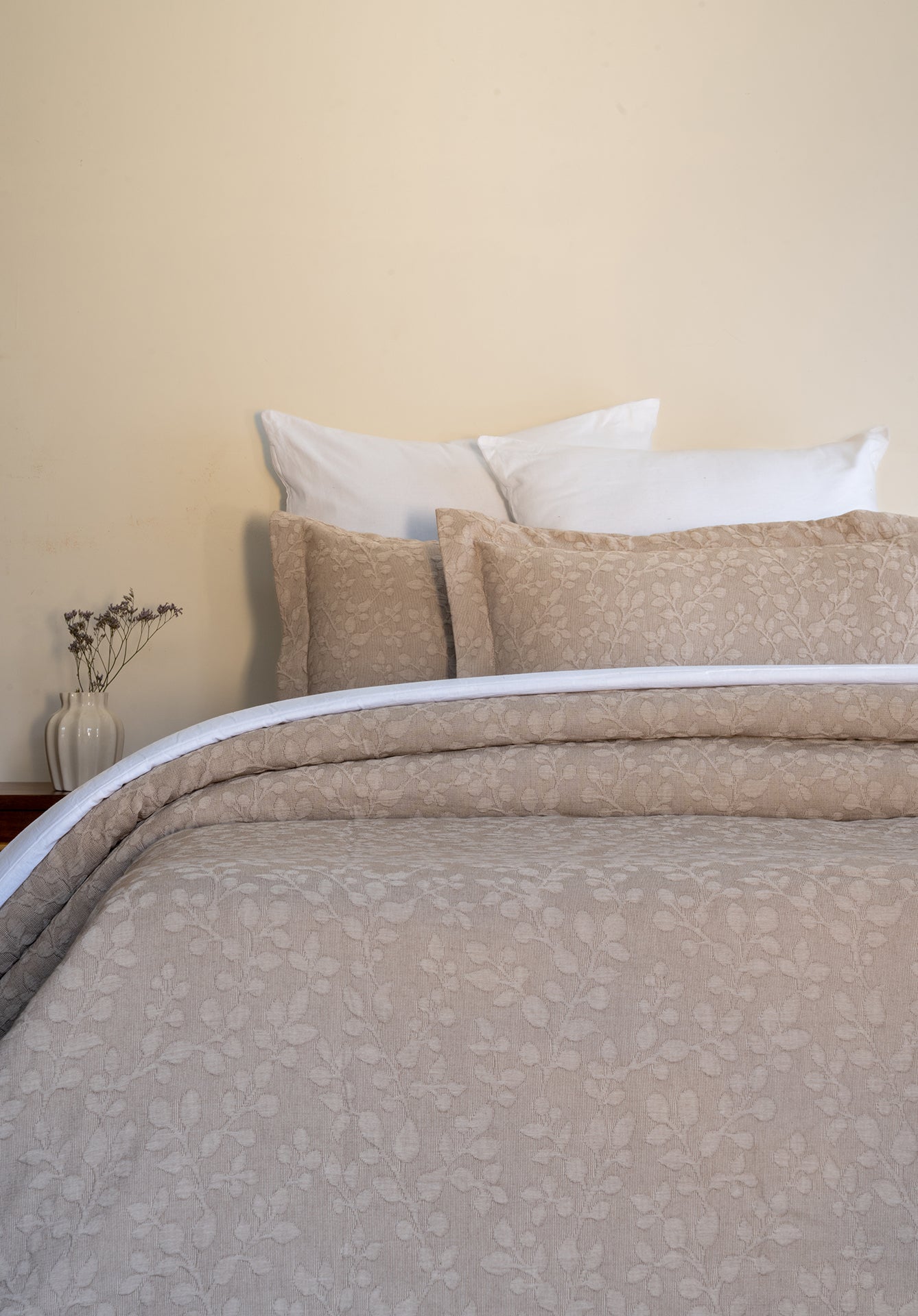 Drape your bed in beauty with Foliage, a masterpiece of sophistication. Immerse yourself in opulence as the exquisite leafy texture, woven with a special technique. Meticulously crafted with unparalleled attention to detail, the Foliage bedspread not only mesmerizes with its stunning patterns but also cocoon you in unmatched comfort.